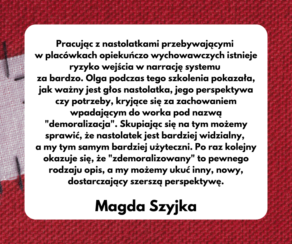 Szkolenie dotyczące pracy ze „zdemoralizowanym” nastolatkiem skierowane do każdego, kto otwarty jest na odkrywanie skutecznych sposobów do pracy z młodym człowiekiem, mierzących się z okresem dojrzewania.