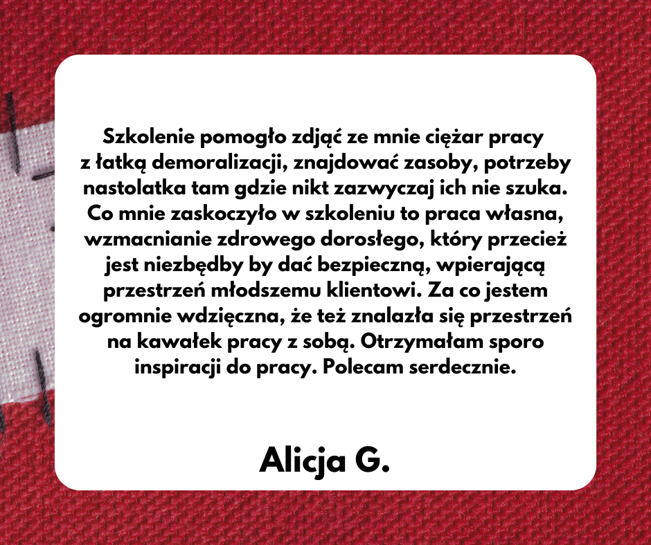 prowadząca: Katarzyna Ślęzak | Certyfikowana Trenerka PSTTSR | Superwizorka-aplikantka PTP